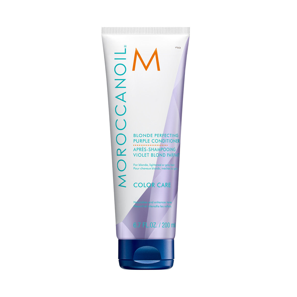 Moroccanoil Blonde Perfecting Purple Conditioner on sävyttävä hoitoaine vaaleille hiuksille. Se selvittää ja hoitaa hiuksia, parantaen niiden hallittavuutta ja sävyä sekä eloisuutta. Hoitoaineen violetit pigmentit taittavat hiusten lämpöisyyttä, jolloin kellertävät sävyt neutraloituvat ja hiukset saavat kirkkaamman, säteilevämmän värin. Sisältää ArganIDTM- teknologian, joka vie arganöljyn sisältämien antioksidanttien hoitotehon syvälle hiuksiin. Käyttö